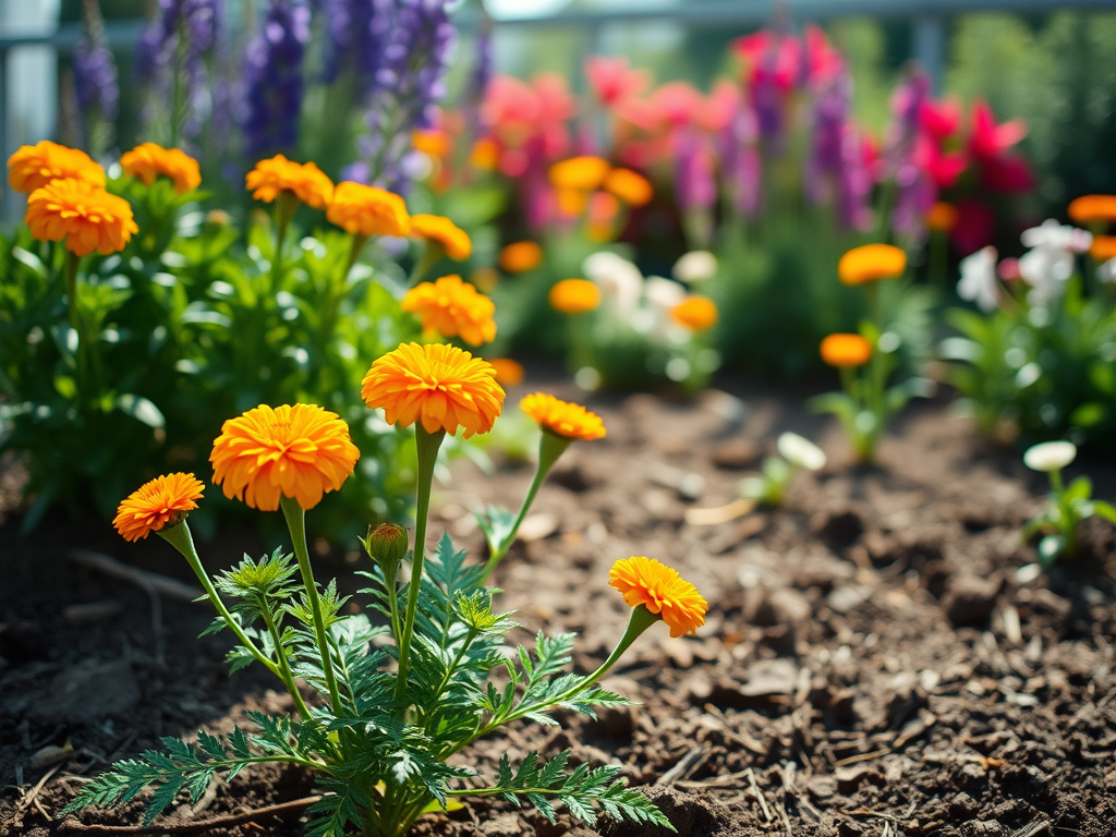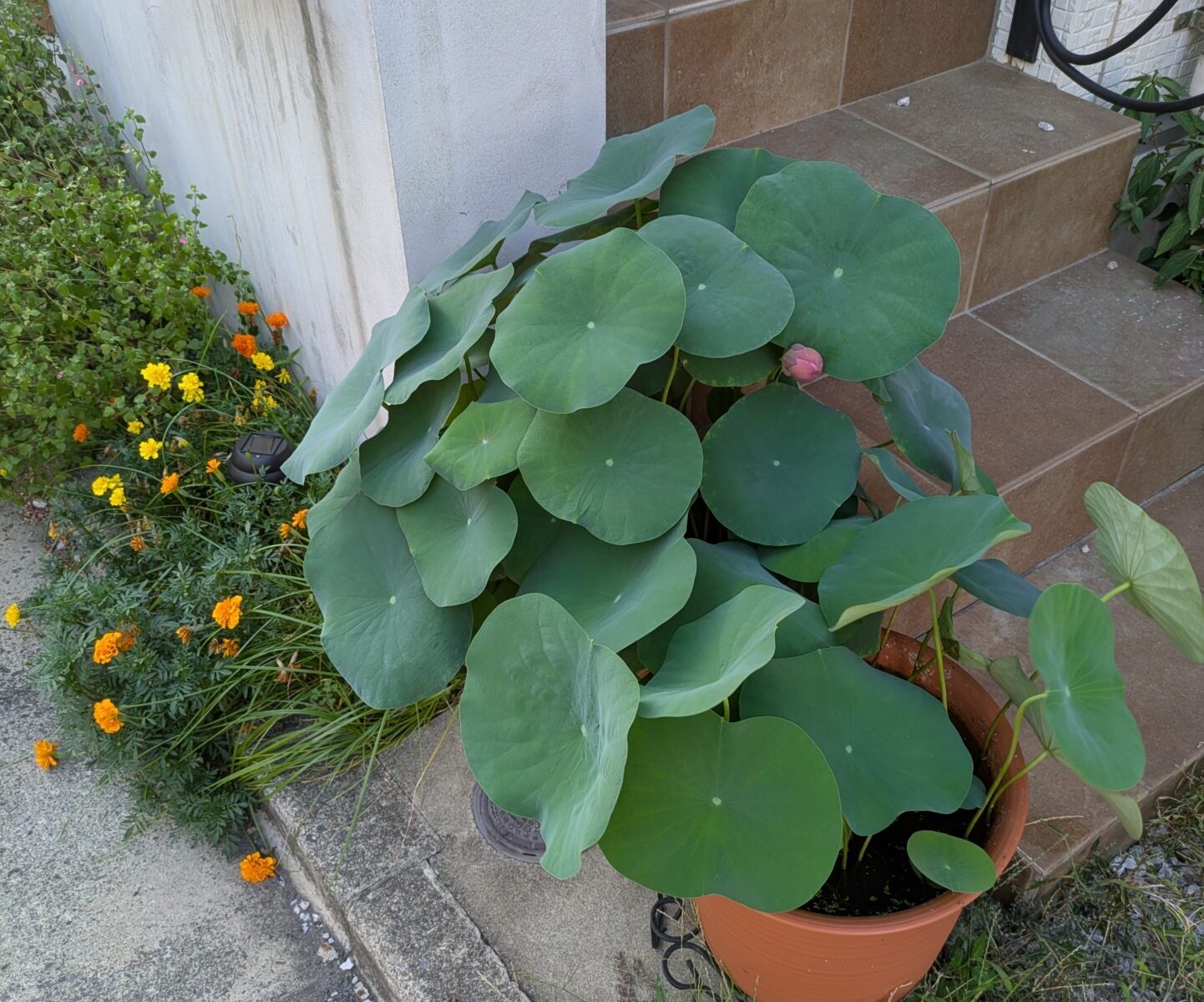 とりあえず即戦力のマリーゴールド。ちょうどこの真上に郵便受けがあるので、草丈が大きくなったりつるが伸びたりするものは避けた。今後植えようとしているバラの病害虫を避けるという点でもメリットがある。